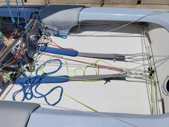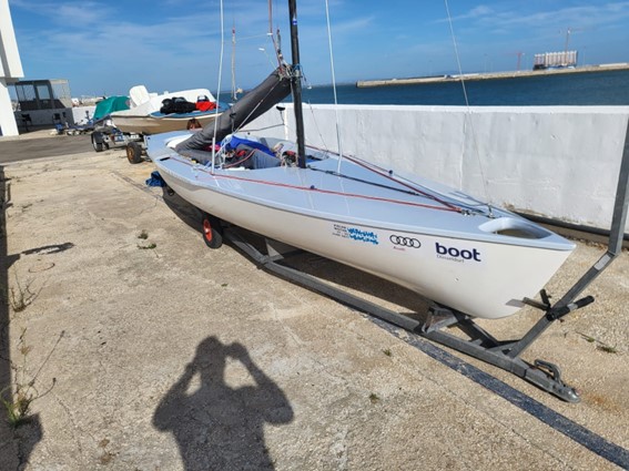 Boot is klaar om competitief te kunnen racen. Trimsystemen zijn in orde, cosmetisch kan de boot een opknapbeurt gebruiken.