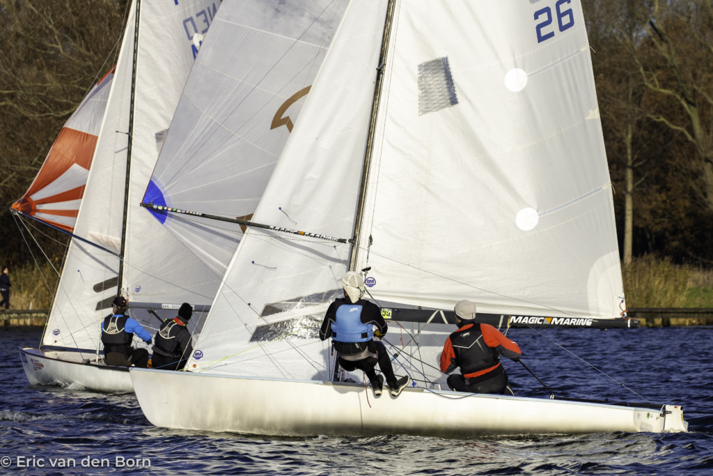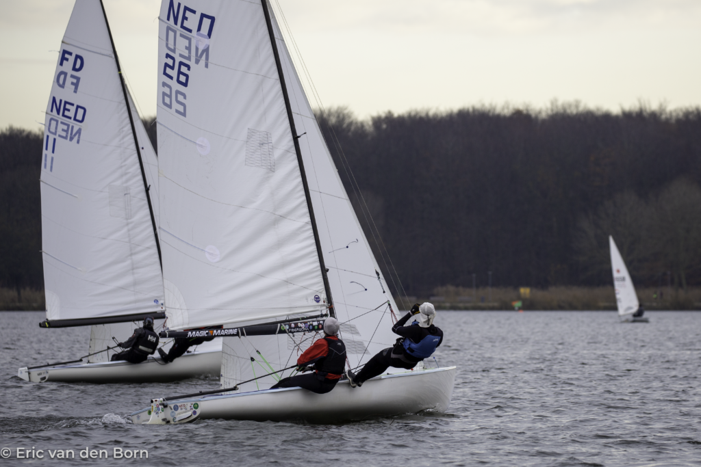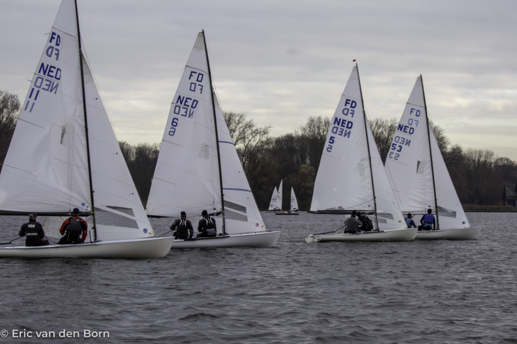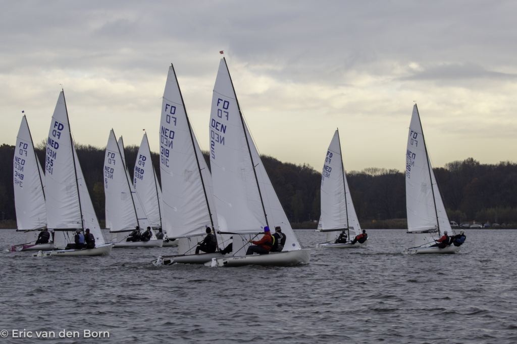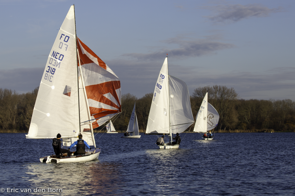 Afgelopen weekend zeilden 9 FD’s in de Boterletter. Een supermooie opkomst voor het kleine Kralingen. De omstandigheden waren ideaal. Een dun zonnetje zorgde dat het niet te koud was (het kan echt heel koud zijn bij de Boterletter). De wind was licht met regelmatig een vlaag van 3 Bft waardoor je net even in de trapeze mocht klimmen, maar dat duurde nooit langer dan 30 seconden.