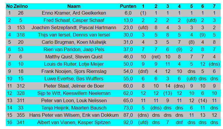 Enno en Ard winnen overtuigend de Gulcher Memorial Regatta in Loosdrecht. Het weekend was prachtig. De temperatuur was zomers. De wind was zaterdag 3 Bft en zondag 4 Bft. De Loosdrechtse toestanden maakten voor zeer interessante races. Een bijzonder knap resultaat werd ook neergezet door onze terugkerende Duitse deelnemer Joachim en zijn bemanning Pascal. Zij volgen een sterk stijgende lijn in hun resultaten. En daarachter een eervolle vierde plek voor Thijs en Dennis van Iersel.