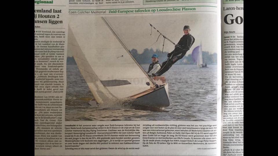 Veel FD-zeilers kijken met plezier terug op een zeer geslaagd weekend in Loosdrecht. Met maar liefst 21 boten aan de start en veel nieuwe gezichten worden 7 mooie races gezeild. De favorieten Enno en Ard laten eens te meer zien hoe goed zij op dit water zijn. Klik voor de volledige uitslag hier.