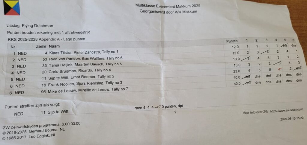 Met zeven ingeschreven FD’s was de opkomst in Makkum op papier niet geweldig. Toch kunnen de inmiddels legendarische gastvrijheid van de vereniging, het prima wedstrijdcomité en de vis van vader en zoon Poepjes uiteindelijk niet anders dan leiden tot hogere deelnemersaantallen in de toekomst. Hoort zegt het voort!